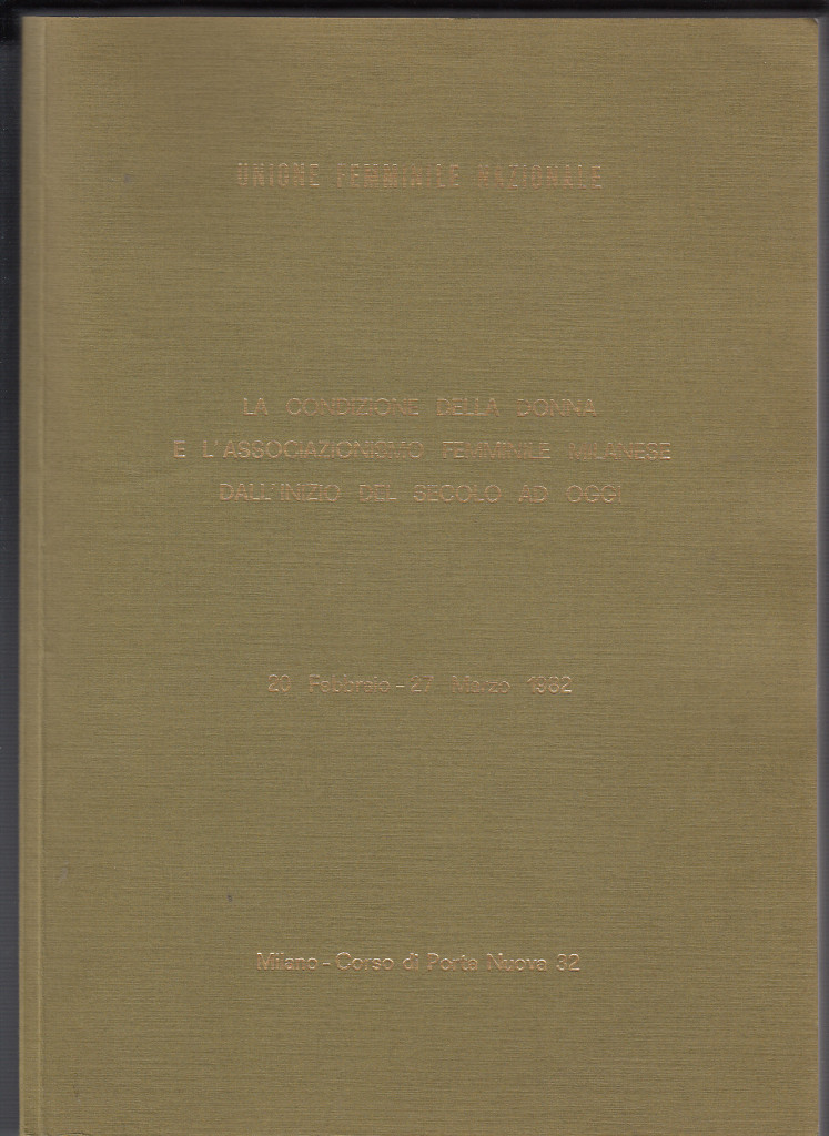 "La condizione della donna e l'associazionismo femminile milanese dall'inizio del secolo ad oggi" è il titolo di una rassegna di seminari proposti dall'Unione Femminile Nazionale nel 1982 nell'ambito dell'iniziativa "Milano per voi" organizzata dal Comune di...